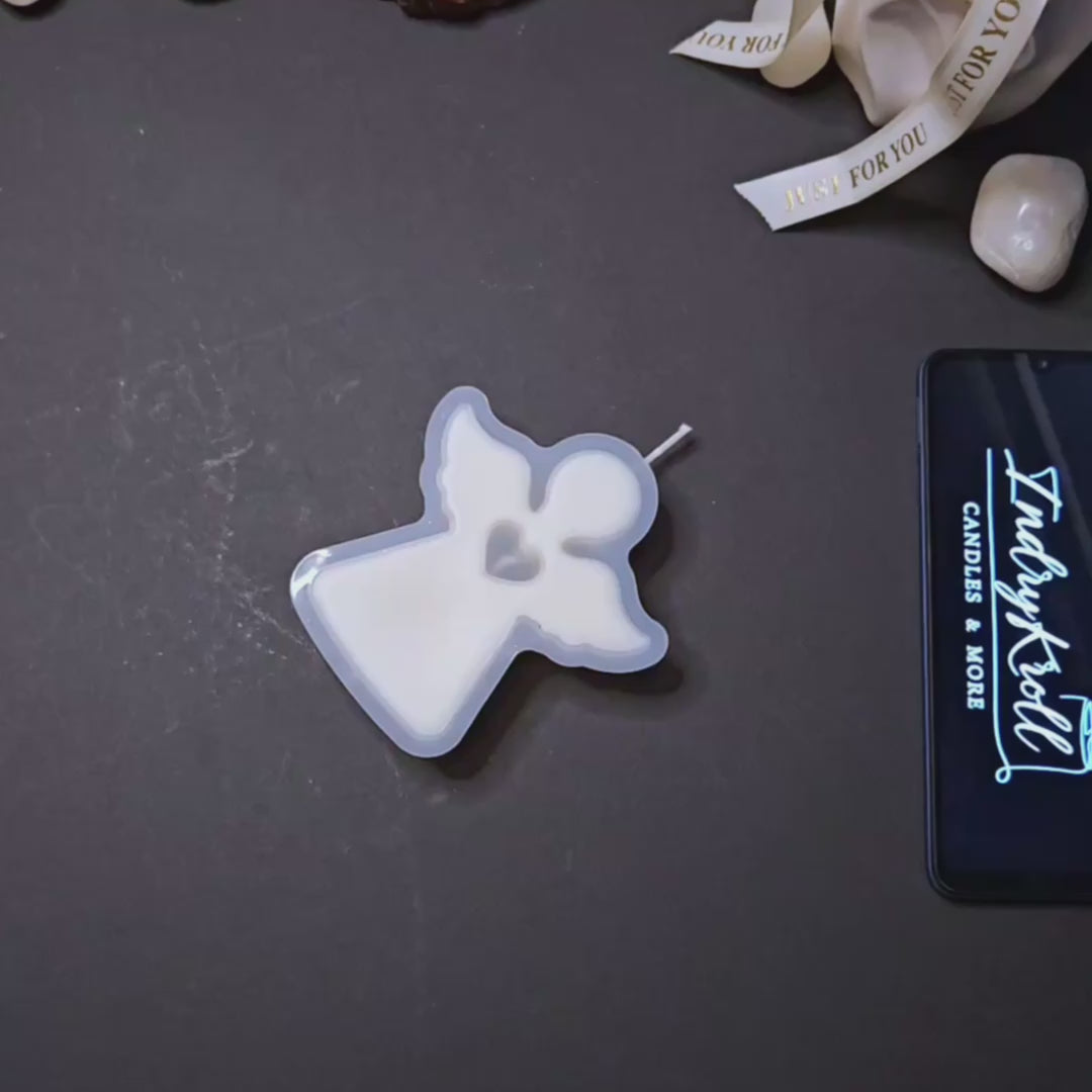 Eņģeļa formas svece ar sirds izgriezumu simbolizē aizsardzību, gaismu un mieru, piešķirot tavai mājai īpašu noskaņu.
